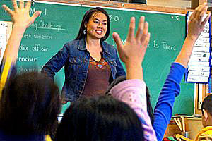 | 小学校・学童保育・児童英語教室・学習塾などへ英会話・英語講師を派遣します。小学生向け英会話テキストを使って子供への教授経験豊富な講師が指導しますので、英会話初心者でも安心して受講いただけます。 |